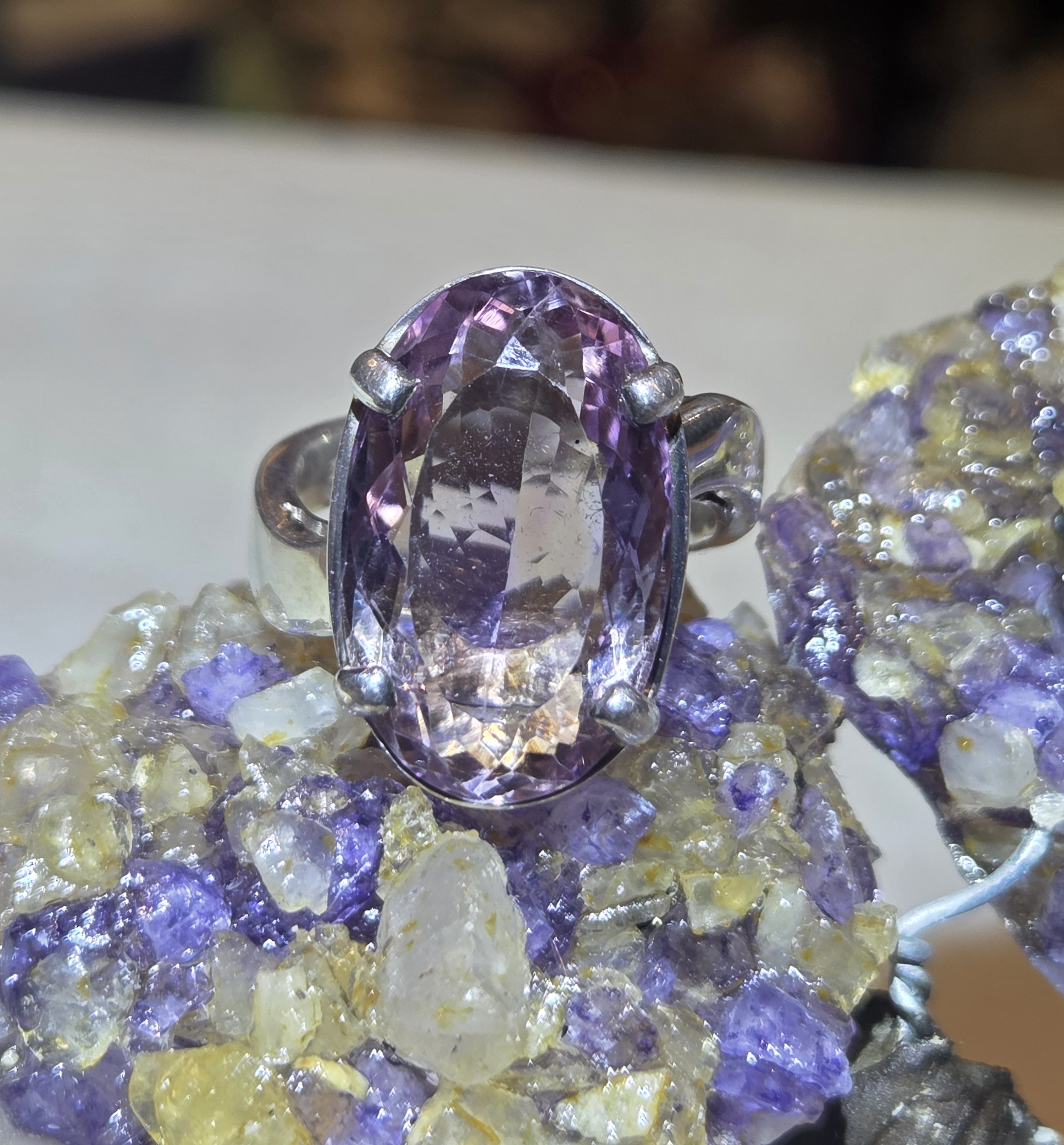 0.75x50inches, faceted Ametrine in 925 Sterling silver. Unique piece of jewelry, delicate and elegant ring.