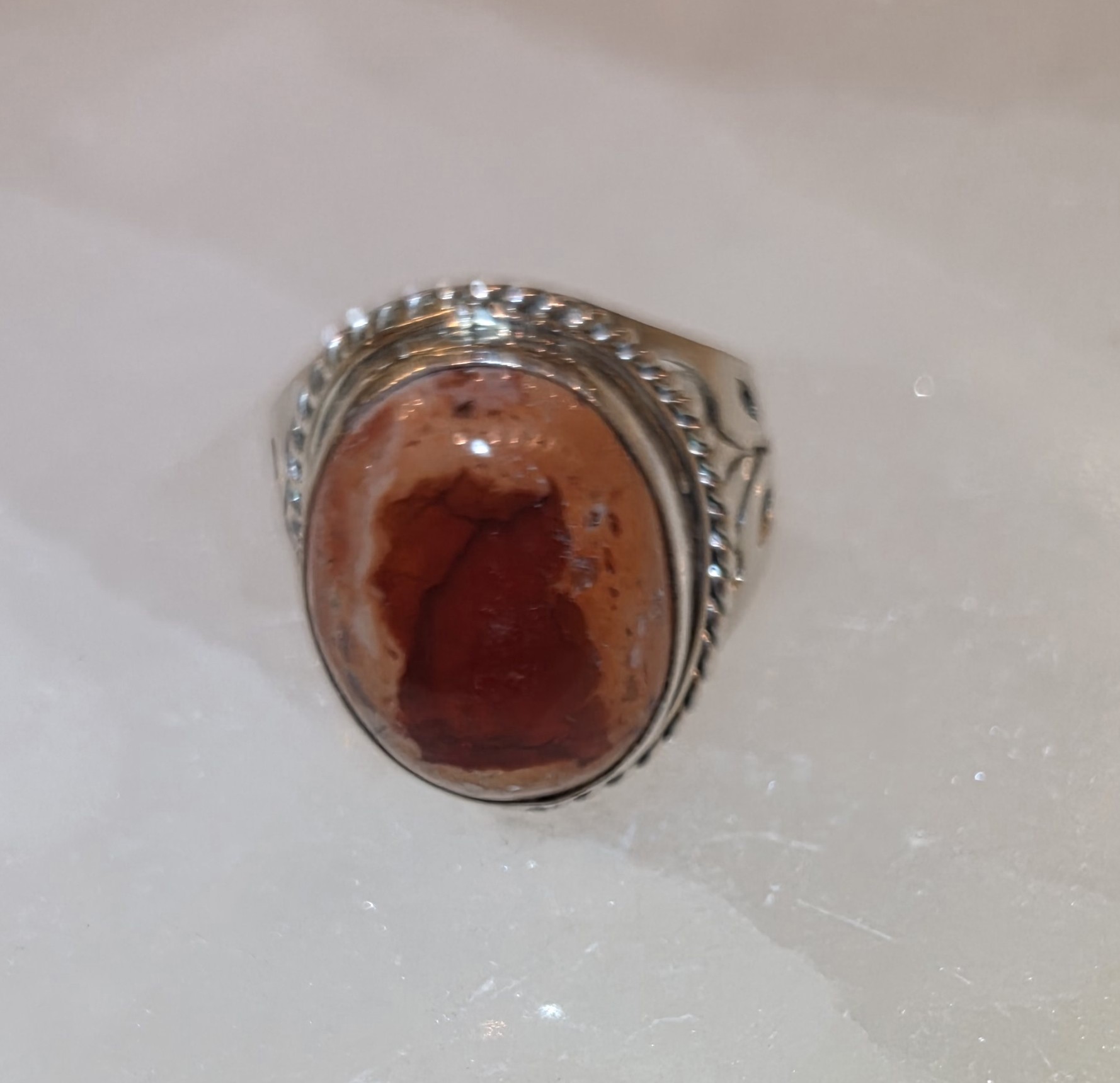 0.75x0.50inches size, rare Fire Opal in 925 Sterling silver. Highly valued by the Mayans, The vibrant colors and fiery energy of Mexican Fire Opal represented the power of the sun and were frequently used in religious ceremonies and rituals.